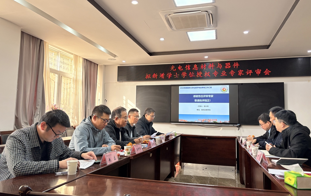 12月1日上午,公司在石鼓校区教学主楼207会议室召开光电信息材料与器件拟新增学士学位授权专业专家评审会。会议邀请陕西省高等公司教学指导委员会委员赵天绪教授、长安大学苏兴华教授、西安邮电大学张智喻副教授,公司太阳集团tyc539赵磊教授、研究生院副经理刘飞教授参与评审。会议由太阳集团tyc539经理周建宏主持。